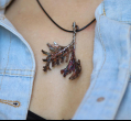 Virginia creeper leaf is covered with silver and turned into a pendant. Precious minerals grown on the surface of silver give the pendant beautiful shades. The pendant is durable. This piece of jewelry is made in a single copy. Necklace length 420 mm The pendant comes in a beautiful gift box with an accompanying booklet that describes the brand's philosophy and our technology.